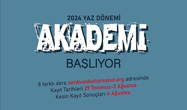 Salı gününden Cumartesi gününe haftanın 5 günü düzenlenecek olan Serdivan Belediyesi Çocuk Bahçesi atölyelerine kayıtlar ise 5 Ağustos tarihinde alınacak. İlk atölye çalışması ise 6 Ağustos tarihinde başlayacak. Ağustos ayı boyunca 5 hafta devam edecek olan atölyeler 19.00-21.00 saatleri arasında gerçekleştirecek ve kayıtlar online olarak serdivankultursanat.org adresi üzerinden alınacak. Yetişkinlere yönelik 8 farklı ders ile Ağustos ayı boyunca düzenlenecek Akademi kayıtları ise 29 Temmuz 3 Ağustos tarihleri arasında serdivankultursanat.org adresi üzerinden alınacak.