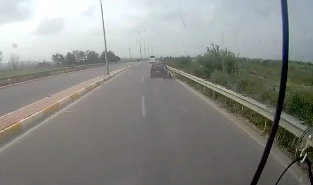 Antalya'nın Serik ilçesinde seyir halindeki Tofaş Kartal marka otomobilin tekeri çıktı. Sürücünün aracın yoldan çıkmaması için yaptığı mücadele anbean araç kamarası tarafından kaydedildi.