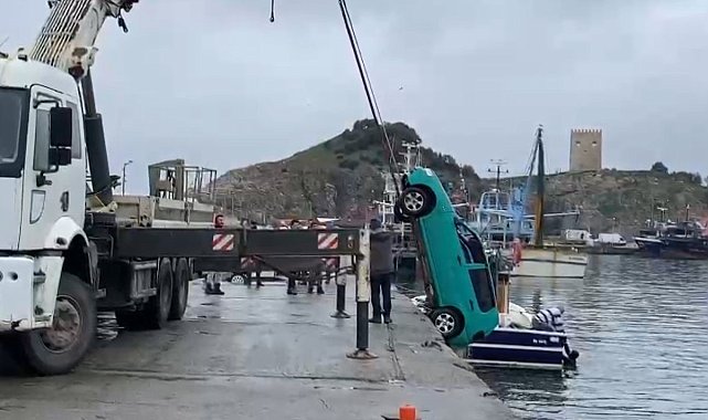 Şile Limanı'nda denize düşen otomobil vinç yardımıyla çıkartıldı. Araç içerisindeki 2 kişi ise tedbir amaçlı hastaneye kaldırıldı.