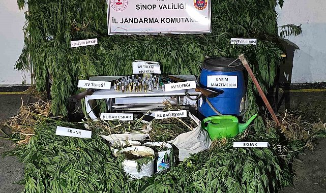 Sinop İl Jandarma Komutanlığı ekipleri, uyuşturucu madde satıcılarına yönelik operasyon düzenledi. Sinop'un Merkez ilçesinde bir adrese düzenlenen operasyonda, yüklü miktarda uyuşturucu madde elde edildi. Operasyonda ayrıca ruhsatsız silahlar da bulundu. Gerçekleştirilen operasyonda; 6 kilo 400 gram kubar esrar, 521 kök kenevir bitkisi, 16 kök skunk bitkisi, 2 adet ruhsatsız av tüfeği ve 86 adet av tüfeği fişeği ele geçirildi. Olayla ilgili 1 şüpheli şahıs yakalanarak hakkında adli işlemler başlatıldı.