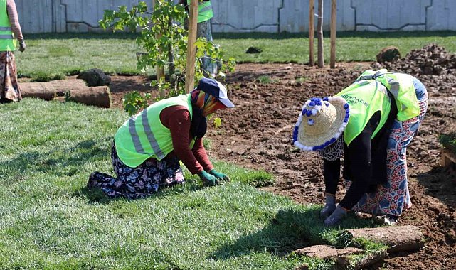 Kocaeli'de trafiğe açılan Yeşilova-Solaklar Köprülü Kavşağı'nın çevre düzenlemesini kadın personeller yaptı.