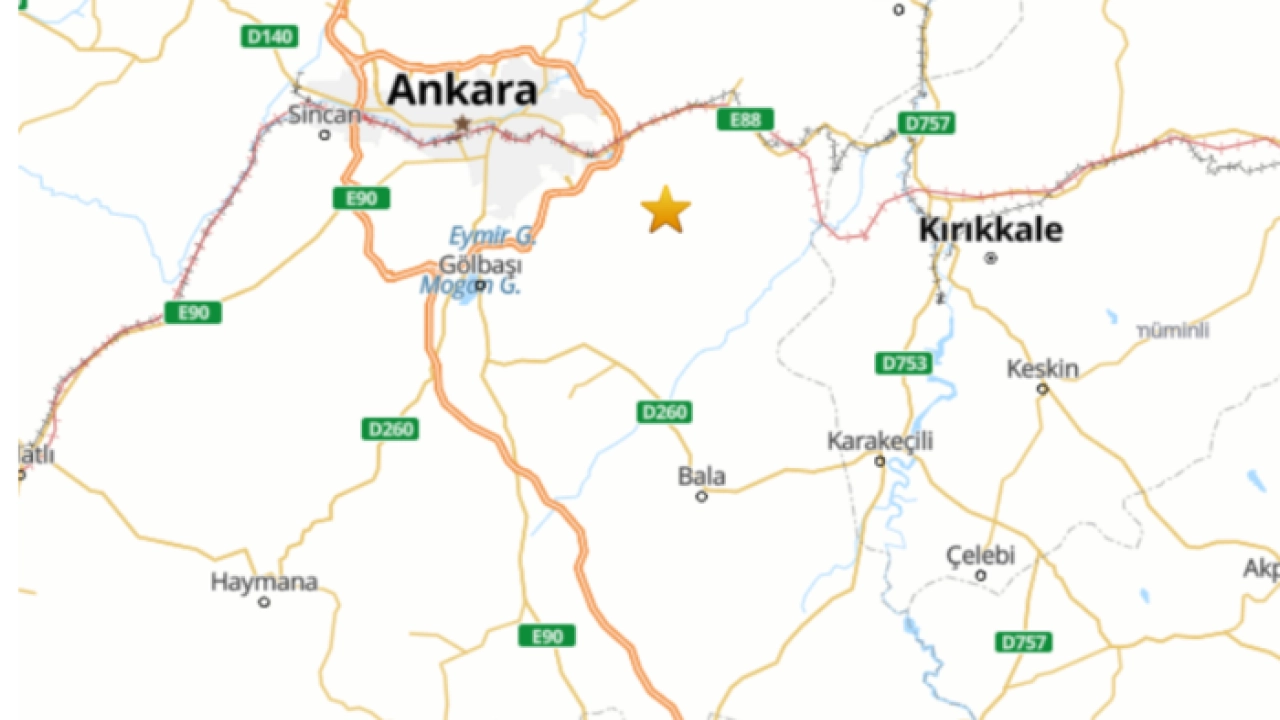 Son dakika haberi: Ankara'da yine deprem oldu. AFAD ve Kandilli Rasathanesi depremin büyüklüğünü 3.0 olarak duyurdu.