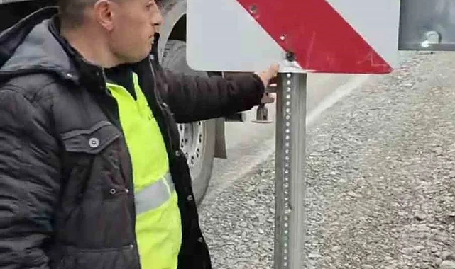Tokat'ta 24 saat önce yenilen tehlikeli viraj levhası bilinmeyen kişilerce kurşunlanarak zarar verildi, kara yolları sorumlusu duruma tepki gösterdi.