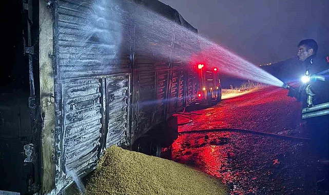 Alınan bilgiye göre, Çamalan bölgesi Alman Mezarlığı civarında B.G.'nin kontrolündeki buğday yüklü 42 ERG 15 kupa plakalı tırın 42 ERK 59 plakalı dorse bölümünün alt kısmından dumanlar yükseldi.