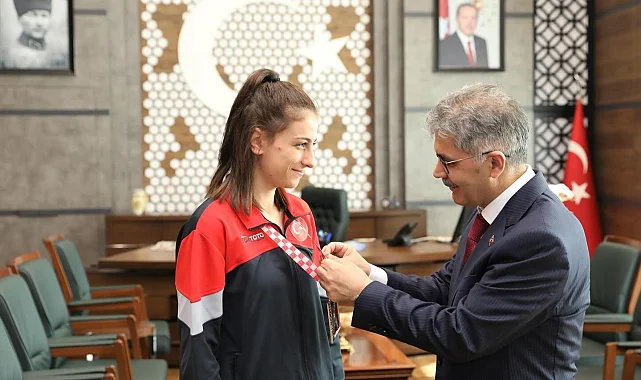 Niğde Valisi Cahit Çelik, Avrupa Boks Şampiyonası'nda Avrupa 2.'si olan Niğdeli milli boksör Emine Kılınç'ı makamında kabul ederek ödüllendirdi.