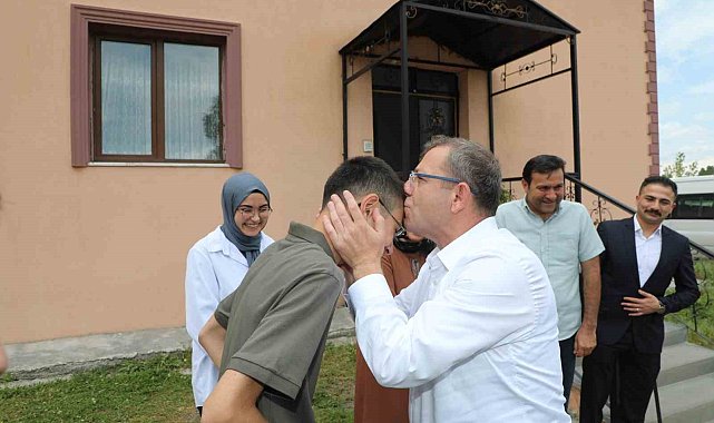 Kars Valisi Ziya Polat, Liselere Geçiş Sistemi (LGS) Sınavı'nda 497,5759 puanla Kars İl 1.'si olan Muhammet Yusuf Aslan ve ailesini Arpaçay'daki evlerinde ziyaret etti.