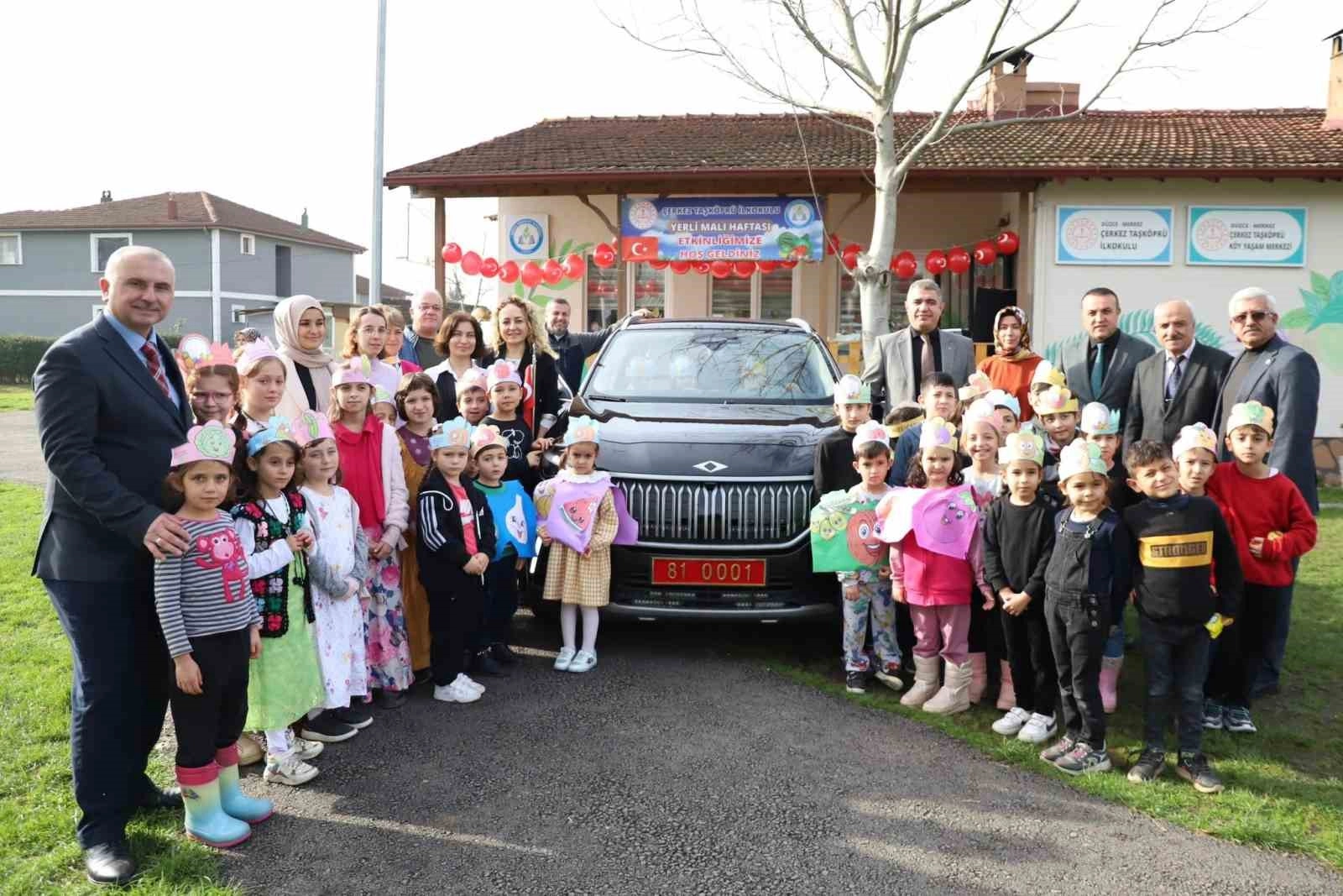 DÜZCE(İHA) – Düzce Valisi Selçuk Aslan, Çerkez Taşköprü İlkokulu öğrencilerinin kutladığı Yerli Malı Haftası etkinliğine Valilik Makam aracı olan TOGG ile gitti. Öğrenciler yerli ve milli olan TOGG yakından tanıyıp köyde tur attılar.