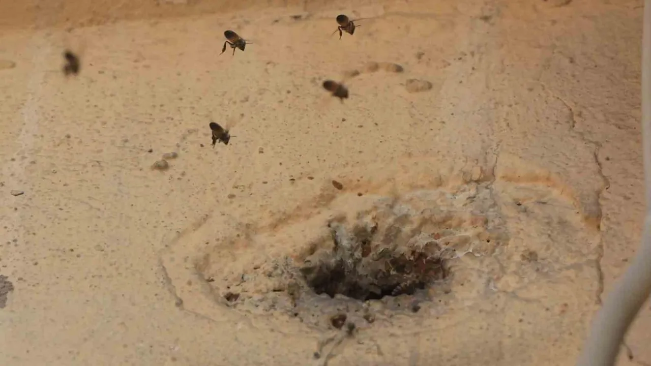 Hatay’da 2 katlı binanın giriş katındaki duvarda bulunan delikten içeri girerek yuva yapan bal arılarını, yuvaya taş atan çocuklar kızdırdı. Kısa süreliğine kızgınlaşan ve kalabalık şekilde uçuşan arılar mahalleliyi tedirgin etti.