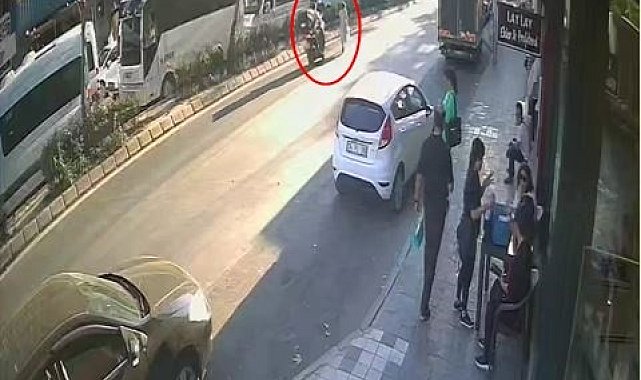 Tekirdağ'ın Çorlu ilçesinde karşıdan karşıya geçerken motosikletli kuryenin çarptığı kadının yaralandığı kaza kameraya yansıdı.