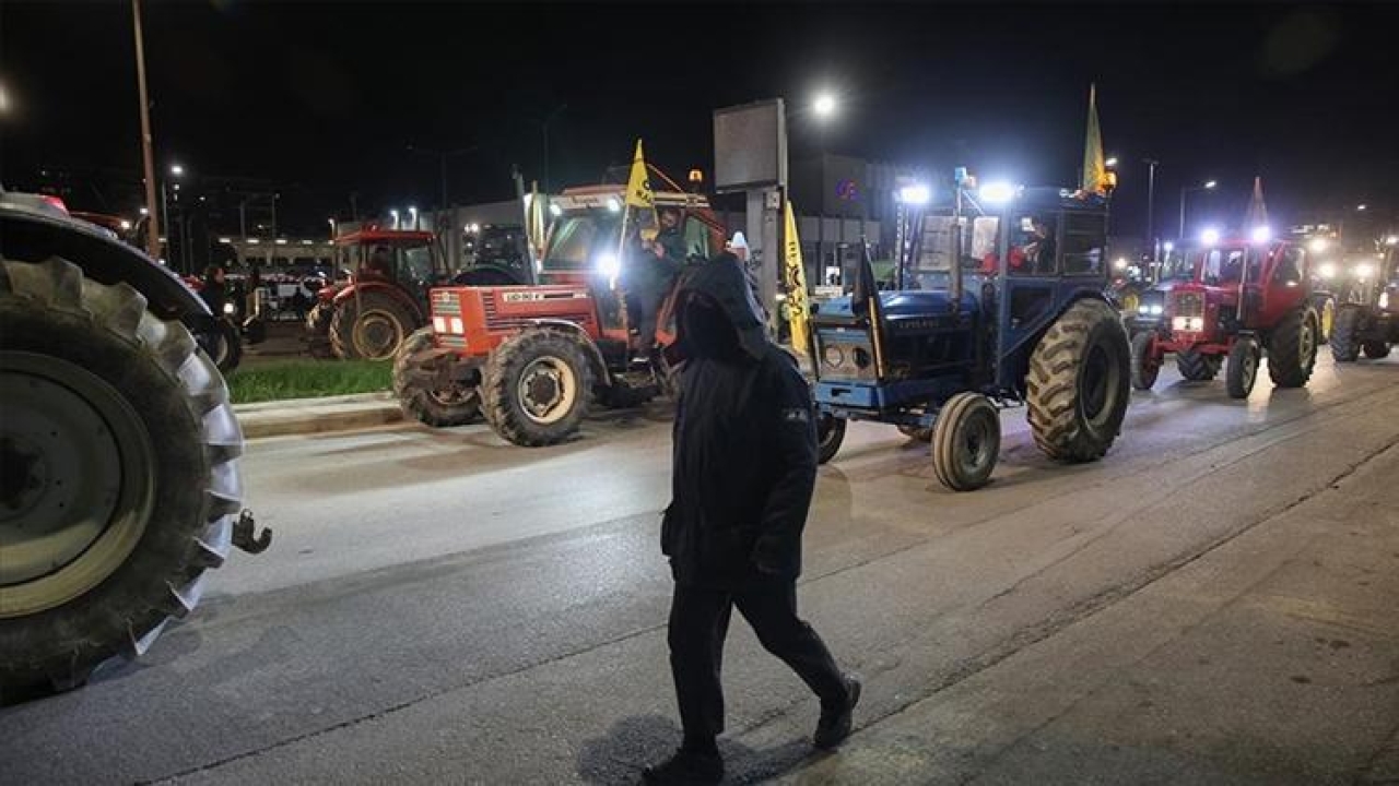 Yunanistan'ın Selanik kentinde çiftçiler, hükümetten destek talebiyle traktörleriyle eylem yaptı.