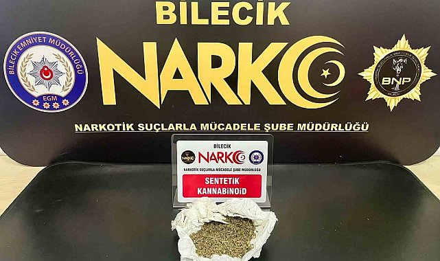 Bilecik Emniyet Müdürlüğü Narkotik Suçlarla Mücadele Şube Müdürlüğü'nce yapılan denetimlerde bir şahsın üzerinde 30,13 gram sentetik kannabinoid (Bonzai) uyuşturucu madde ele geçirildi. Şahsa 'Kullanmak için uyuşturucu veya uyarıcı madde satın almak, kabul etmek veya bulundurmak' suçundan yasal işlem başlatıldı.